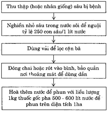 Để sản xuất thuốc trừ sâu thuốc trừ sâu bằng virut, người ta thường thu thập những con sâu bị bệnh về phòng thí nghiệm rồi nghiền nhỏ, đun sôi và đem phun ra ruộng. Cũng có nhiều người không thu thập ở ngoài đồng mà nuôi cấy sâu nhiễm ngay ở trong phòng thí nghiệm để lấy sau chế biến thuốc. Dụng cụ và quy trình chế tạo thuốc cũng khá phức tạp. Chúng ta có thể tham khảo mô hình sau: